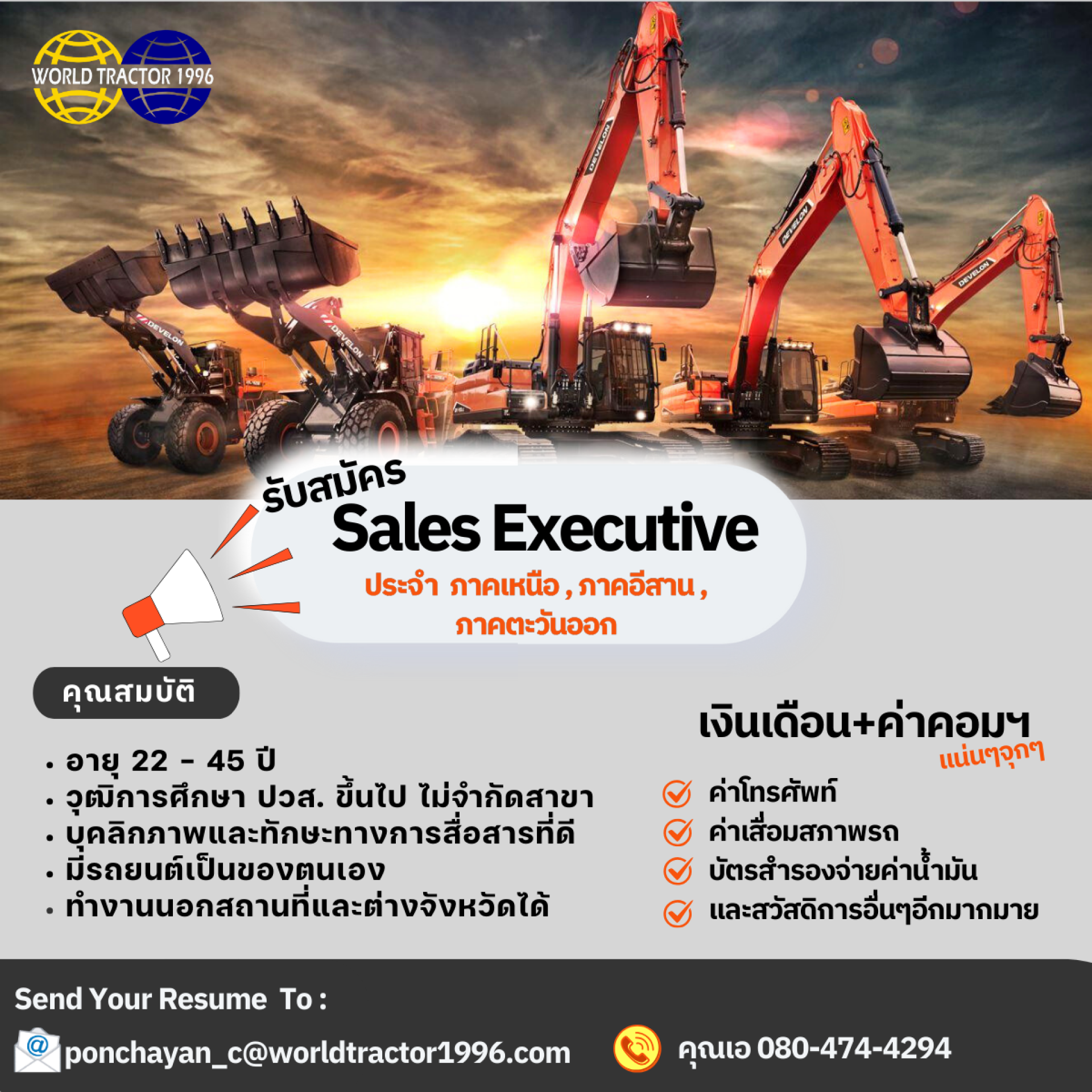 รับสมัคร Sales Executive ประจำภาคอีสาน ภาคเหนือ และภาคตะวันออก หลายอัตรา